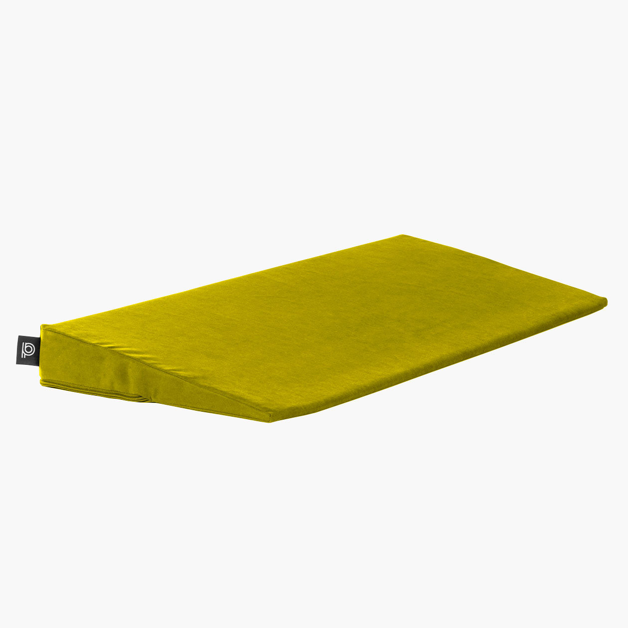 Auch losgelöst vom chair entfaltet der wedge sein Potenzial: als weicher Untergrund beim Stehen oder als Hilfsmittel beim Dehnen von Waden und Achillessehnen. Er ist in zwei Größen erhältlich – passend zu den beiden chair-Varianten – und wahlweise mit robustem Genua-Stoff oder veganem Kunstleder bezogen.